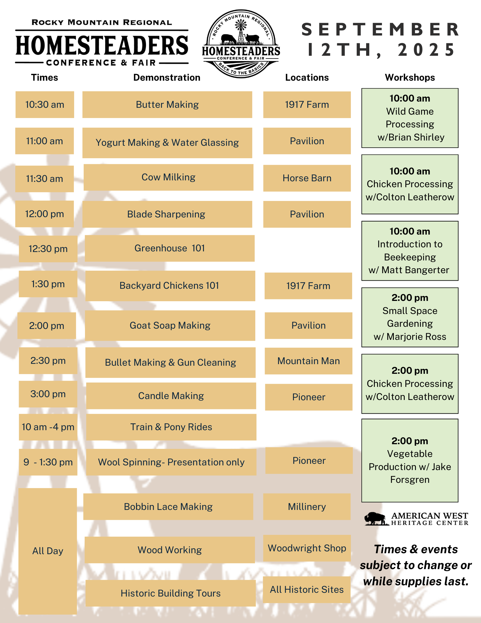 Check out the Schedules for the 2025 Homesteaders Conference Below!