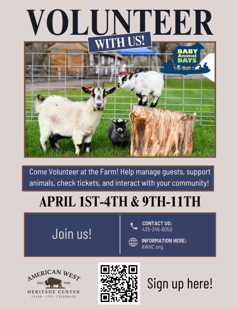 American West Heritage Center loves and appreciates all the support it gets from it’s sponsors and volunteers. We couldn’t keep the history alive without you. If you are interested in helping out this Spring, Summer, or Fall, please contact us and we’ll find a place for you that will be rewarding and fun!